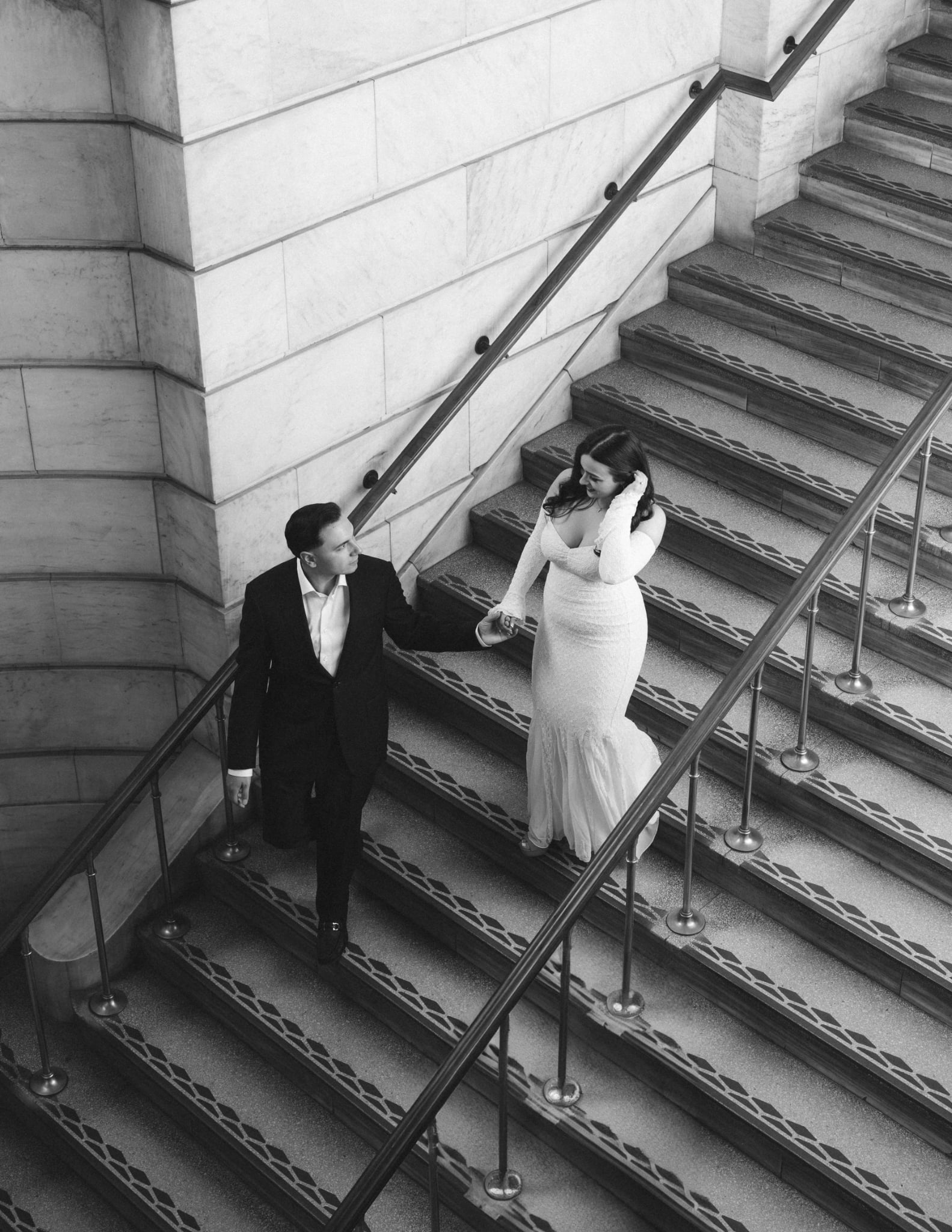 Your wedding setting adds its own character to the story. Picture the two of you taking a quiet walk across the crosswalk, hands linked, the city softening around you. Then shift to the ceremony, where the stone architecture and warm light create a timeless backdrop. These small moments, from simple street shots to elegant portraits, come together to capture the day in a way that feels real, intimate, and effortlessly you.